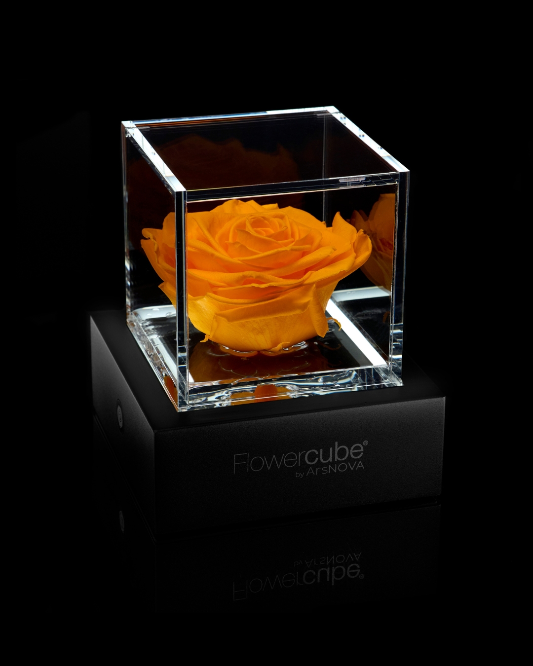Una rosa naturale stabilizzata, racchiusa in un elegante cubo di plexiglass, che diventa simbolo dell'amore che dura nel tempo.